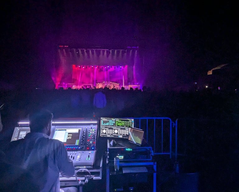 Waves eMotion LV1 ink 32/16 stagebox og Extreme-C server med 8/8io i FOH